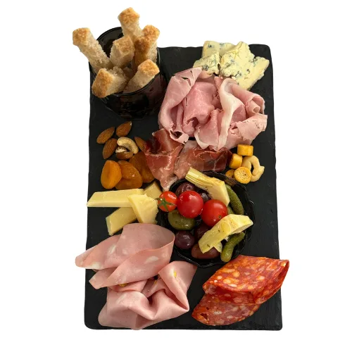 paine cu maia, branza ricotta, rucola, speck afumat, rosii cherry, ulei de masline